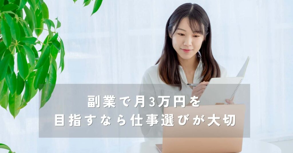 - 月3万円を目指すなら、高単価よりも続けやすい仕事を選ぶほうが現実的