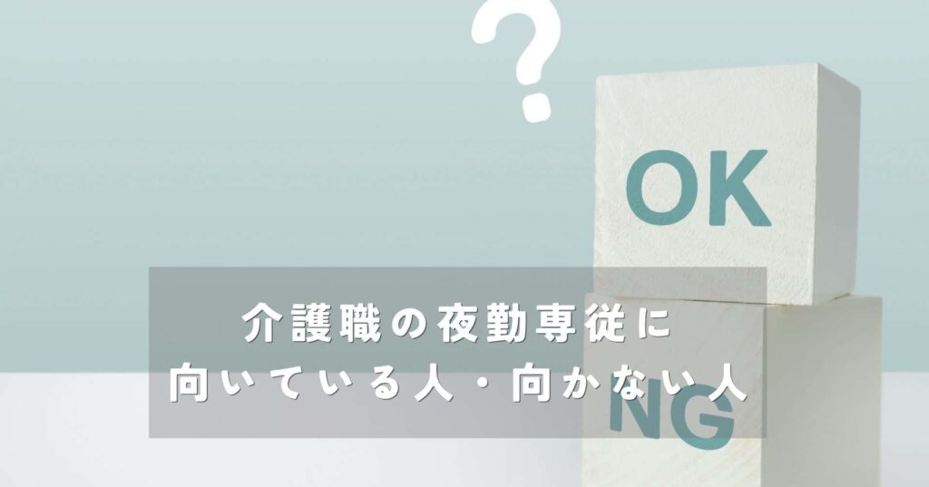 夜勤専従は、介護職として今よりラクに働ける可能性もあれば、合わない職場を選んでさらにしんどくなる可能性もある働き方です。
